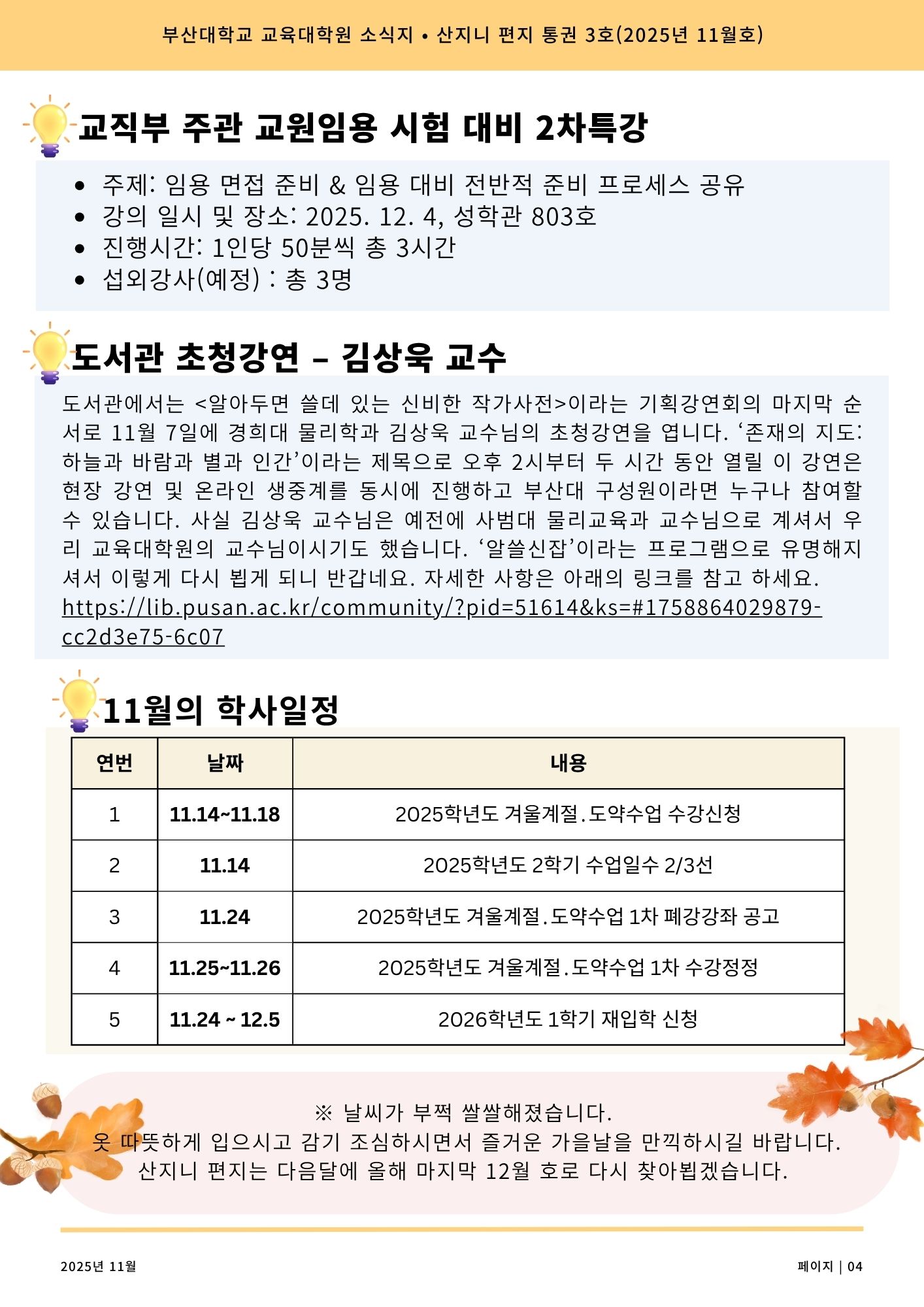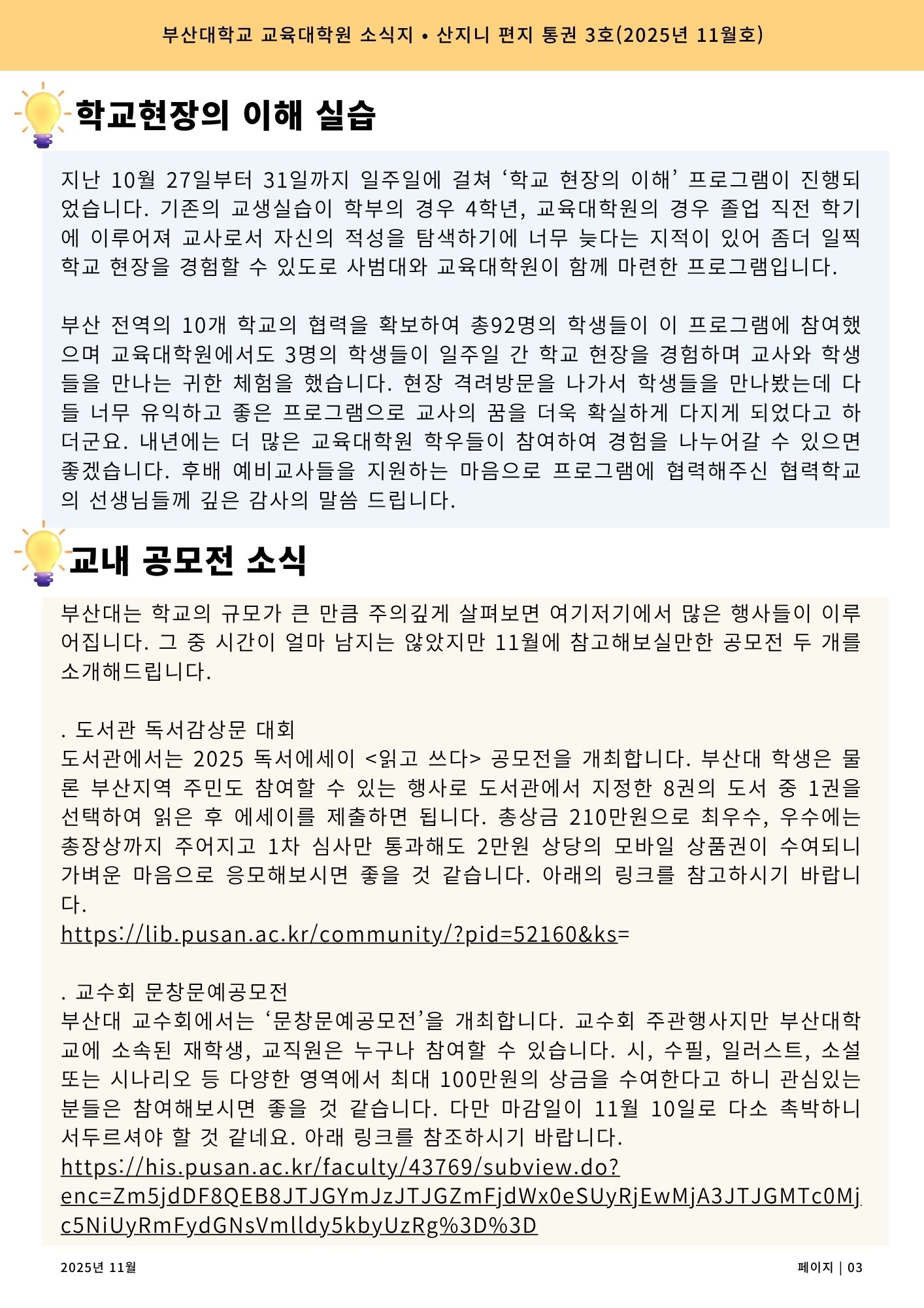 fnctId=bbs,fnctNo=18919 교육대학원 소식지 - 산지니 편지 2025년 11월호(통권3호) date 2025.11.03 name 교육대학원 e-mail view 9 첨부파일 첨부파일이(가) 없습니다.